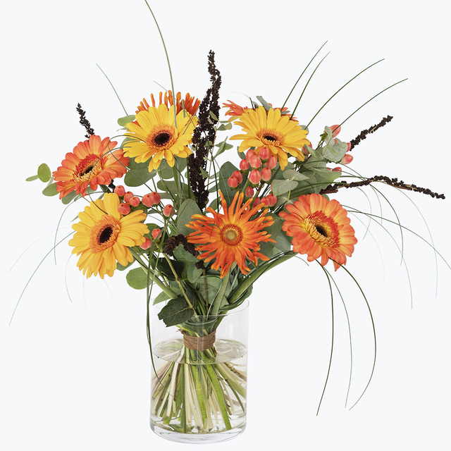 En varm og fargerik hilsen som lyser opp dagen, der 35 kr av inntektene per solgte bukett, går til Mental Helse ungdom. Når du velger denne gerbera-buketten gir du ikke bare en hilsen til en du bryr deg om, du blir også med på å støtte Mental Helse Ungdom i deres arbeid for å fremme psykisk helse blant unge. Det er en gave som sprer glede til mottakeren - og mange flere.